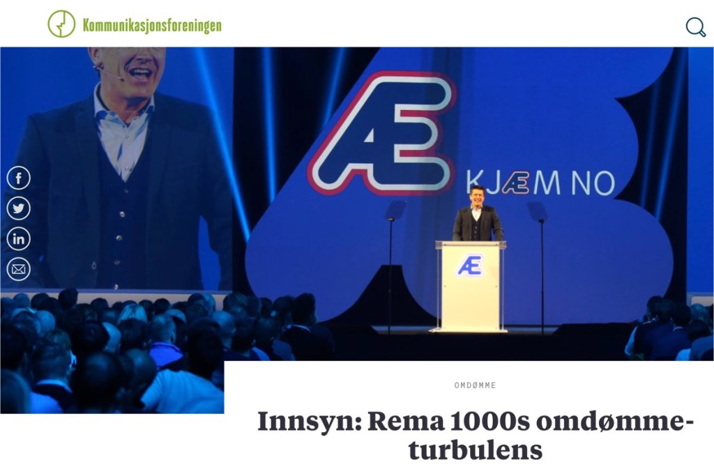 Kommunikasjonsforeningen publiserte høsten 2019 en interessant sak med innsyn i Rema 1000s omdømmeturbulens. Dere husker kanskje at dagligvarekjeden møtte massiv motstand og opplevde mye medieoppmerksomhet de ikke ønsket seg vinteren 2017?